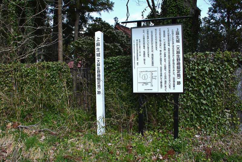 「仙台藩古城書上」によりますと、安倍頼時の家臣である麻生玄長(あそうはるなが)の居城と伝わっているとのことで、「陸奥話記」の「大麻生野柵」に擬せられてもいますが、戦国時代には葛西氏家臣の居城として利用された可能性も示唆していました。