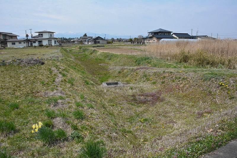 南側も現在は水田として耕作されていますが、はっきりと上記画像のような堀跡の形跡を遺しています。