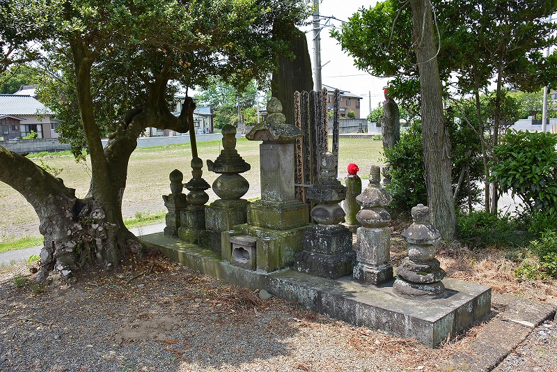 水堀跡らしき水田 寒川尼と網戸朝村の墓石