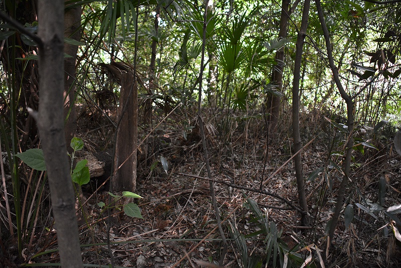 崖線の個所まで細い道が続いておりましたが、高さ10メートルを超える急崖以外はこれといったような地形を見出すことはできませんでした。
