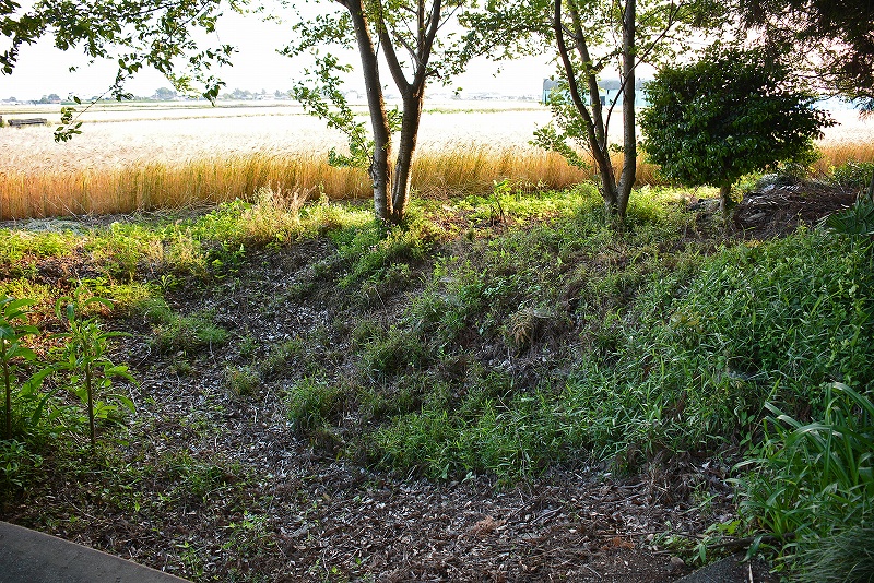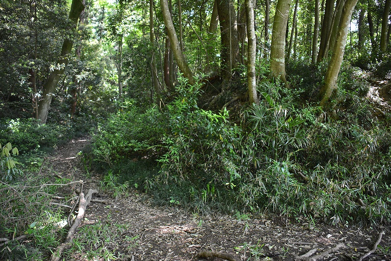 土塁の遠景 藪の中でひっそりと佇む土塁