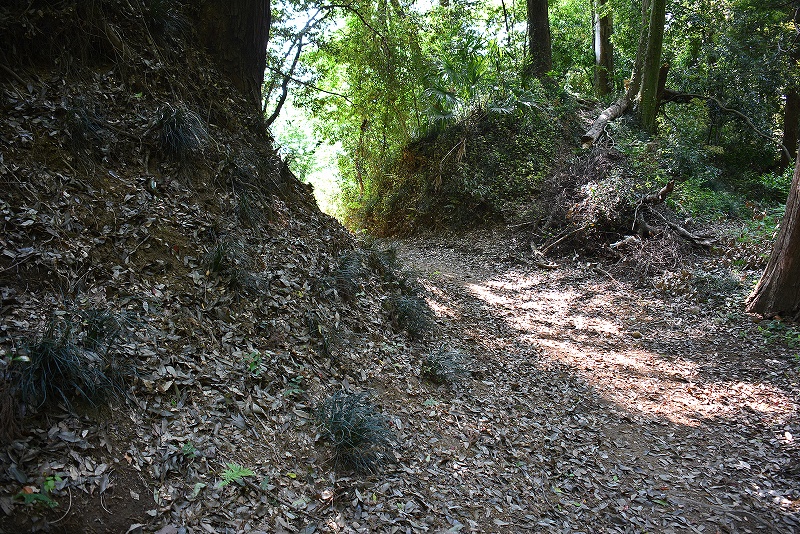 なお、この土塁はそのまま崖線の切岸につながり深さ10メートル以上の深い谷を形成していることから、湧水を伴う沢が流れているために、先ほどの西側の搦め手下方に存在する土塁の東側は足元の緩い湿地となっておりました。