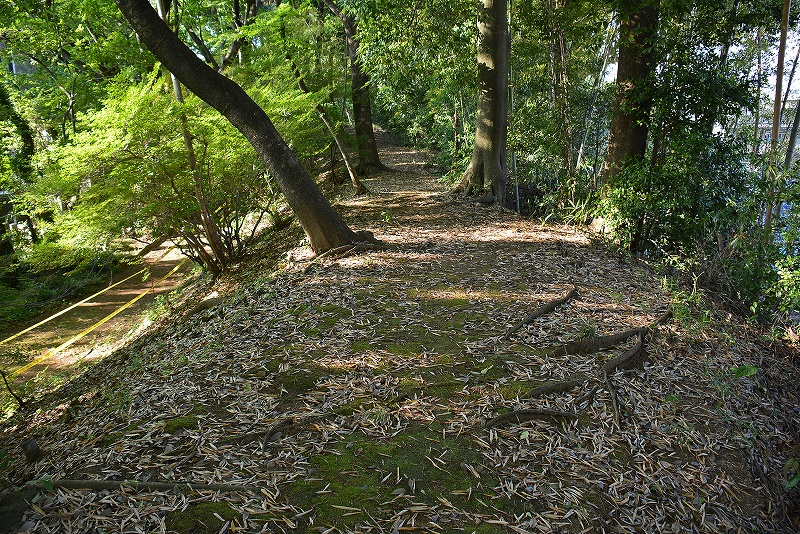 西搦め手下方の土塁 土塁と崖線