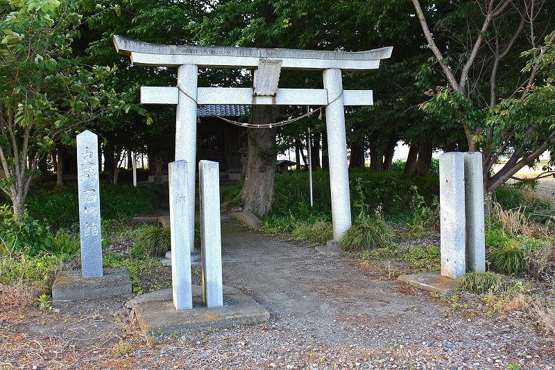 この場所は神社の社叢が目印なのですが、水田の中に集落からも外れてぽつんと建っていることもあり、やや分かりにくいかも知れません。