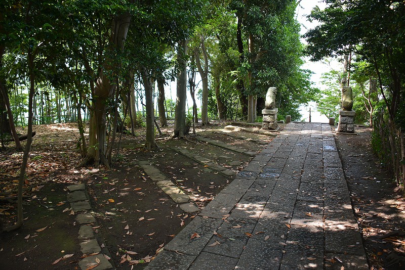 さらに南側には約300mに近い長大で緩やかな傾斜を有する参道が続いている。