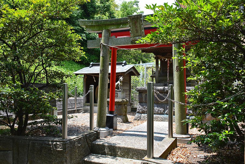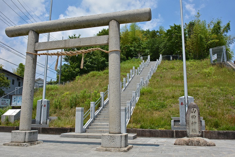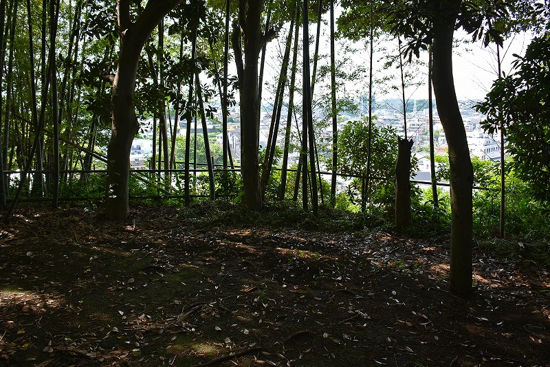 山田神社境内は北側は切り立った崖線を形成しているものの、東側は先ほど登ってきた比較的緩やかな稜線であり、西側にはあまり比高差を感じることのできない住宅地が広がっている。
