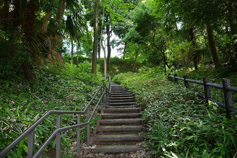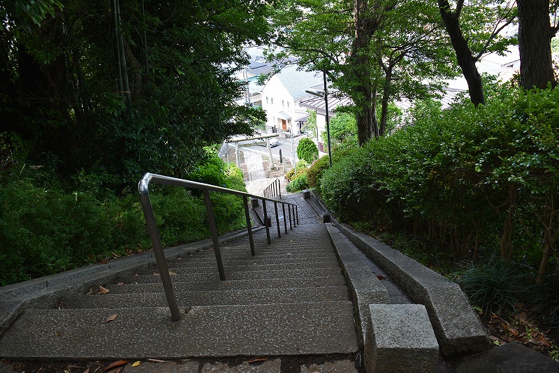 徒歩10分足らずでも、この傾斜のはなかなか登り甲斐が...終いには30段ほどの石段も。