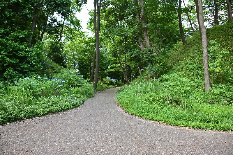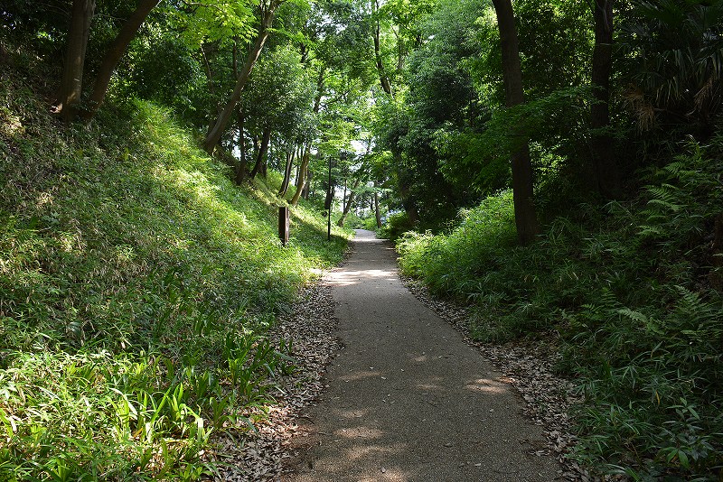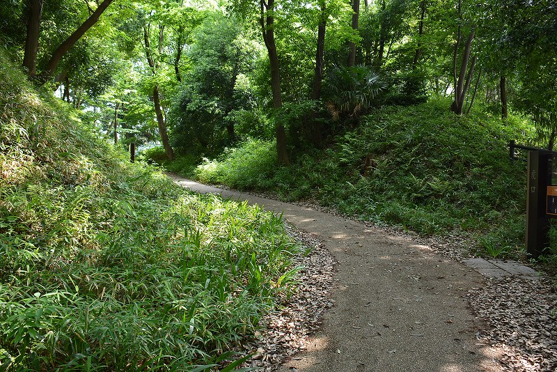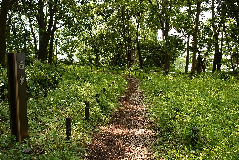 堀底が舗装されていることから郭間を歩く分には問題がないものの、予想されていたこととはいえ、郭の形状、土塁の規模、配置、小口の様子を観察するには矢張り不向きな時期であった。