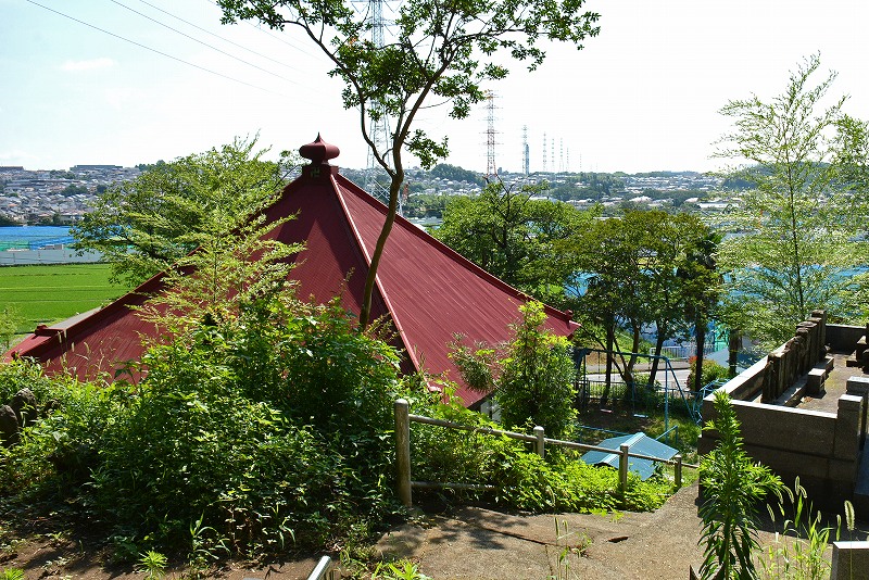 しかしこれに境内背後の墓地続きの削平地2か所を含めてると、約1500平方メートルくらいとなり「新編武蔵風土記稿」の「一反八畝」という記述にはおおむね合致はします。