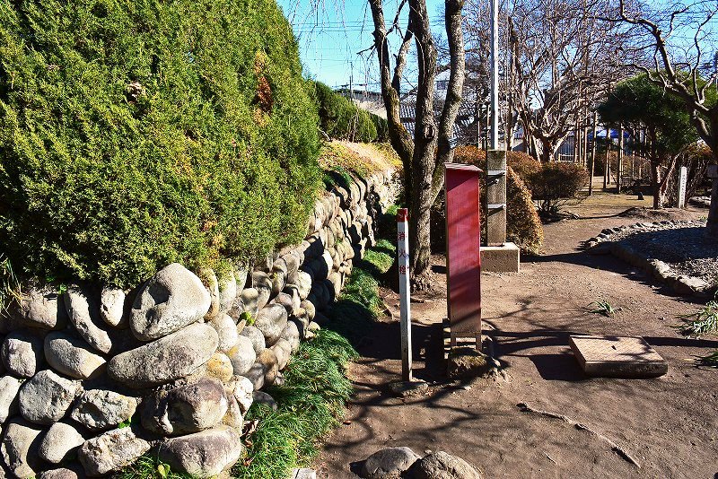 むろん近世初期の陣屋との関係は分かりませんが、火薬工場ではなく防爆壁としてはやや規模の小さい土塁で、仮に爆風を防ぐことが目的ならば石材である河原丸石を使用するというのは理に適わないものも感じます。