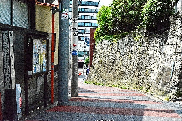 おなじく遺構はありませんが、筑土城との間には南北方向に「御殿坂」が台地を横断しその標柱も所在しています。