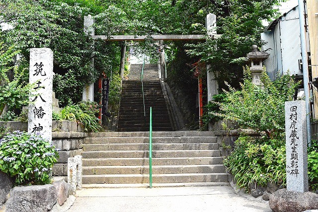 先ほどの「矢来公園」からは、北へ坂を下り、早稲田通を西に向かい、弁天町の交差点を渡り、早稲田通から逸れてコンビニの脇の参道からアプローチします。