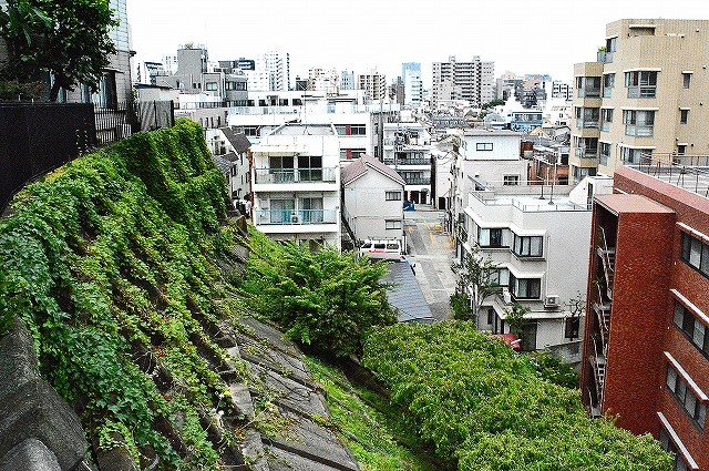 北西の大久保通、北東の神楽坂との比高差は10mほどに過ぎません。