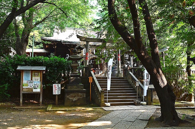 道灌山公園に接した新堀、谷中の総鎮守で、鎌倉期に豊島左衛門尉経泰により創建と伝わる、江戸時代には眺望に優れた景勝地でぁったという。