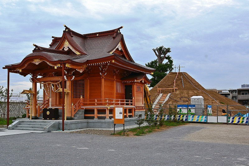 なお、神社社殿背後の「富士塚」は補修工事の真っ最中