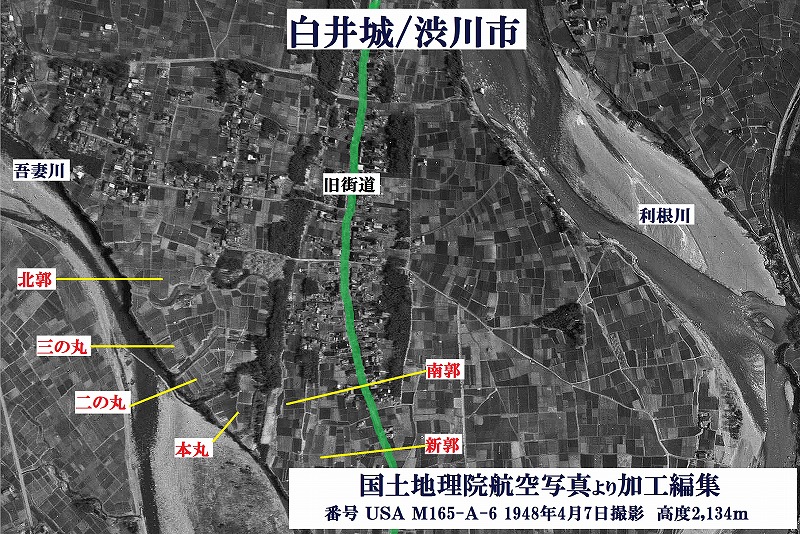 凸有名な群馬県の白井城では各郭と堀跡などの配置が鮮明に撮影されていた