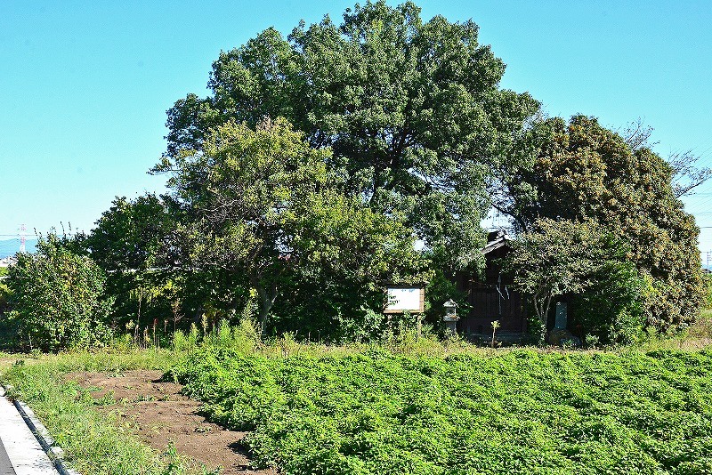 その北側に小さな社叢を伴う小祠に夏草に隠れ源義国を祭神とする当社が所在