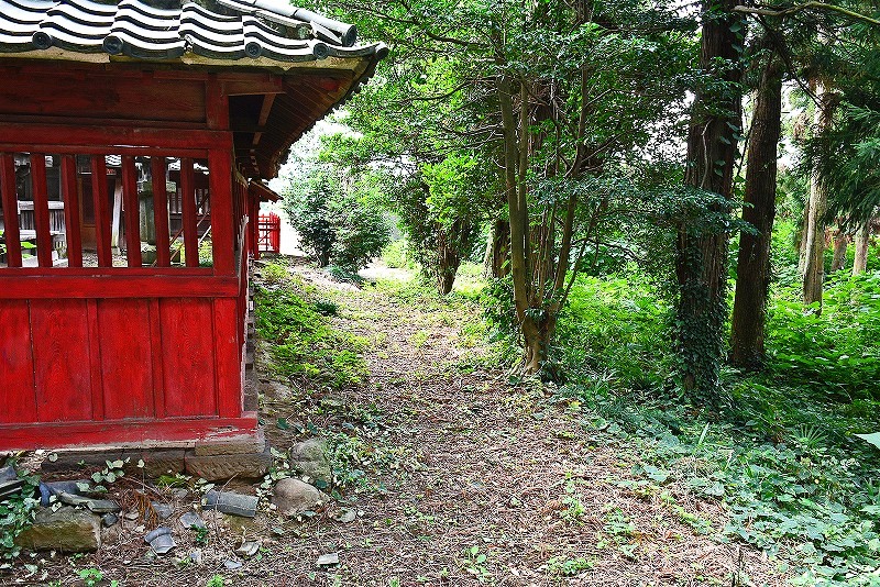 なお、社殿北側には下記画像のような盛土が施され、その結果辺とは約1mほどの比高差を生じていた