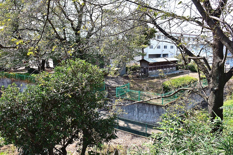 現在は僅かに境内地が周囲よりも高いくらいで地形的な特徴は見いだせない