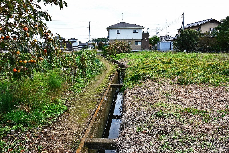 その北寄りに幾つかの水路(跡)が所在し関連性はありそうだが、現在ではU字溝となり趣には乏しい