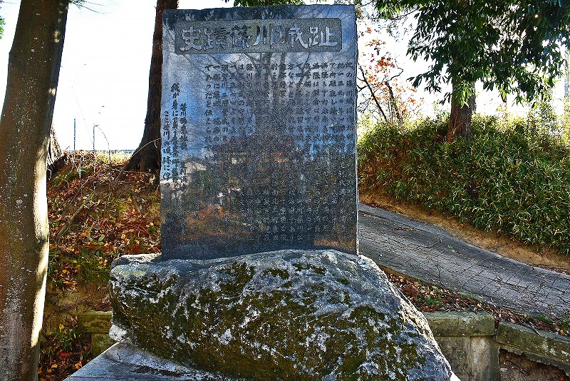 側面には「星ヶ城の旧址(きゅうし)天正年間在城 稲荷神社旧跡 大正2年4月10日郷社合祀」と刻まれておりますが、光線の関係で画像が暗く読みにくくなっております <(_ _)>