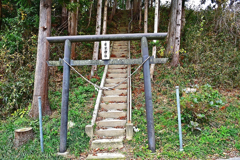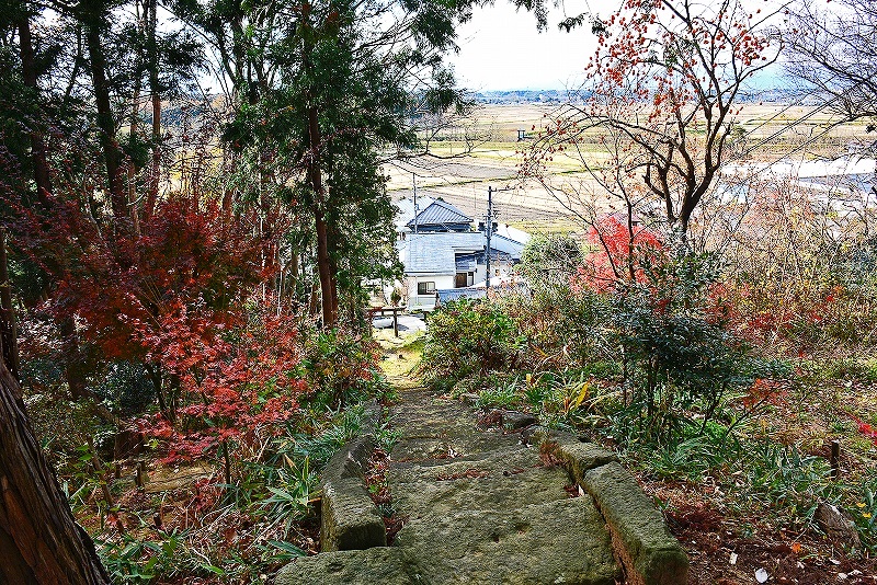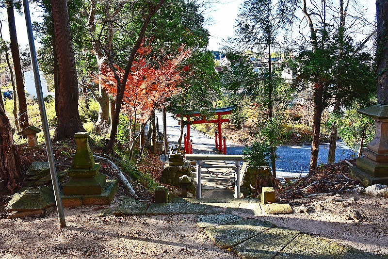 当地には愛宕神社が所在しており、比高差10mほどの西側麓の石段からアプローチした。