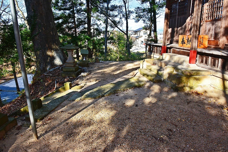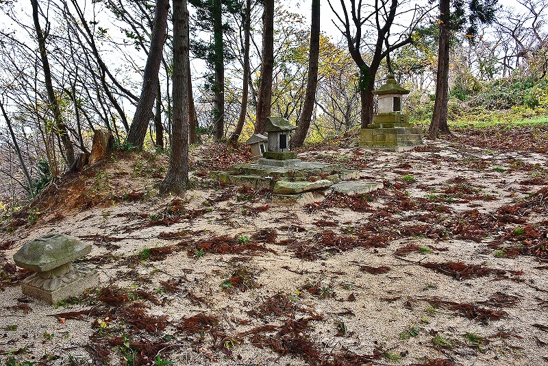 また市道を挟んだその南側には、小さな石祠が祀られている眺望のよい小高い削平地が所在しており、物見のようにも見えなくもない。