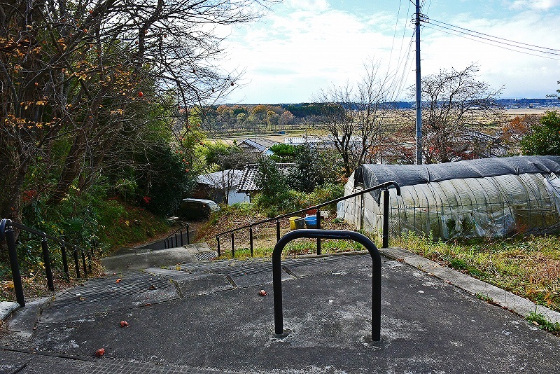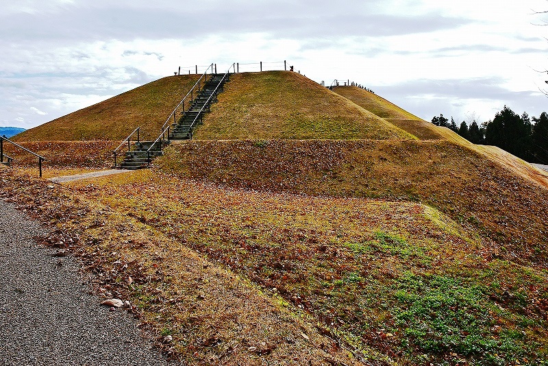 日曜日の昼間ではあったが耐寒気温も低いことから墳丘上に赴く見学者はほぼ皆無なようで、寒風の中で眺望のよい360度のパノラマ風景を約10分ほど独占することができたが、その結果漸く治りかけてきた気管支炎が復活し鼻水も止まらずに困惑することとなった。