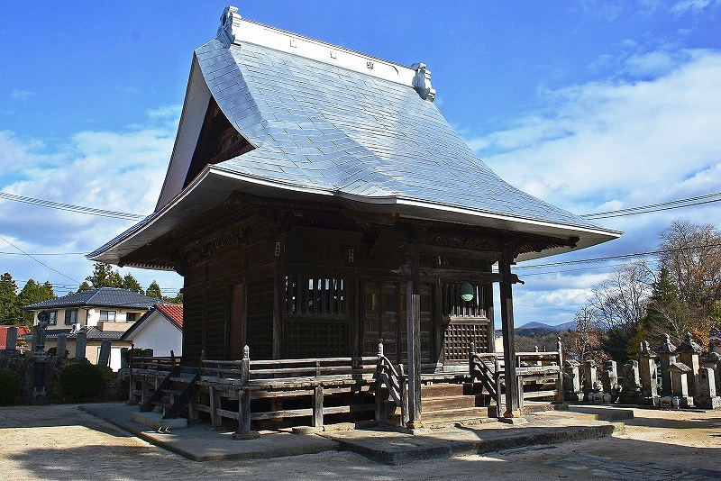 字名は「上野」「上野代」のほか「上石切場」などの字名も所在している一帯で、集落内の路地を挟んでその南側には大善寺集会所の建物が所在している。