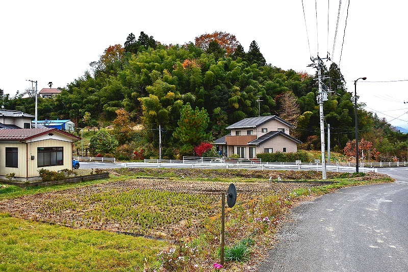 なお、東側約150mには小さいながらも「高柴ダム」の人造湖が所在しているように、この辺りの地形は谷筋が入り組んだ比較的水利の便の良い地形であるらしい。