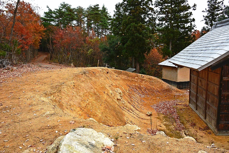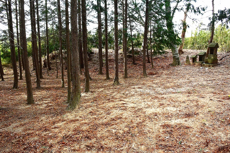なお、丘陵の北端部に基壇上の地面の盛り上がりが所在しているが、小祠などが祀られていた跡のようにも見えた。