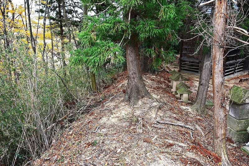 またたしかに一見土塁の様にも見えるのだが、実際には社殿の建立に当たりその背後の地山を削り取った地形であることも分かる。