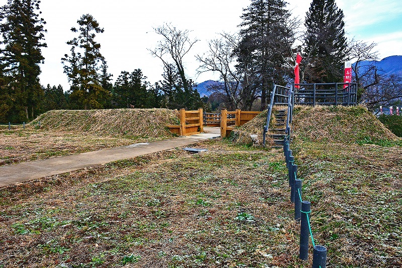 復元土塁やいくぶん過剰気味に空堀への転落防止などの措置が為されていなくもないが、空堀と郭の配置を眺めているだけでも楽しげな城址公園風の城跡である。