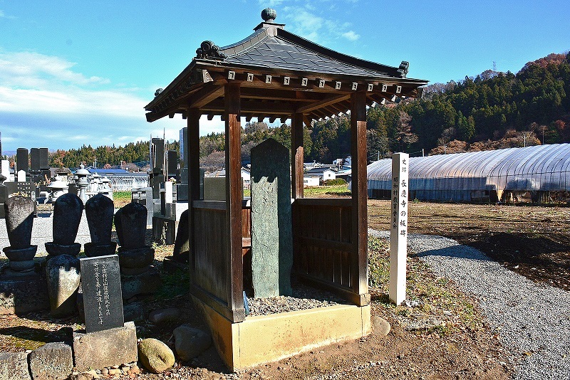近くの長慶寺境内には元寇の時期に関連するとされている鎌倉期の板碑が文化財に指定され大切に保存されている。