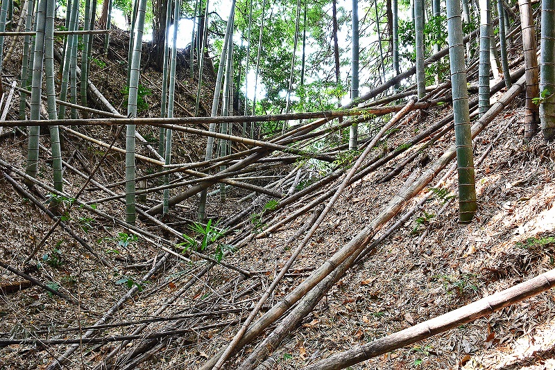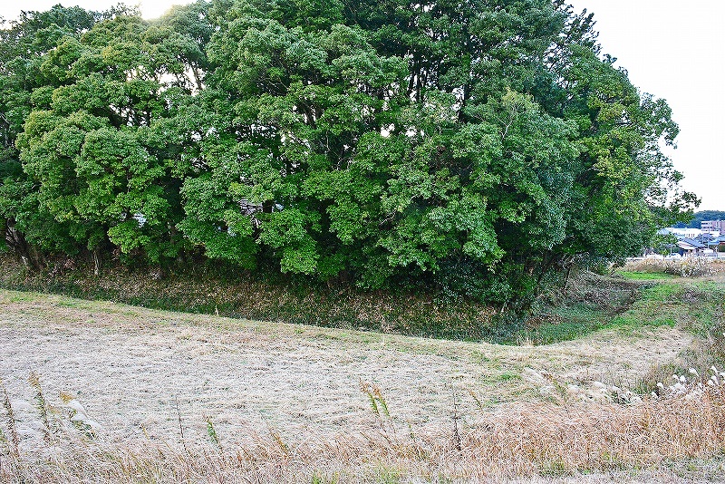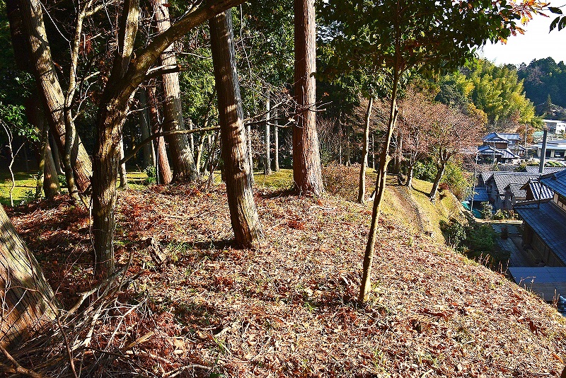 現在でも竹林奥に土塁が存在しているらしいのだが、西に水路、北にJR草津線の軌道、東に民家宅地に囲まれて肉眼での観察はできなかった。