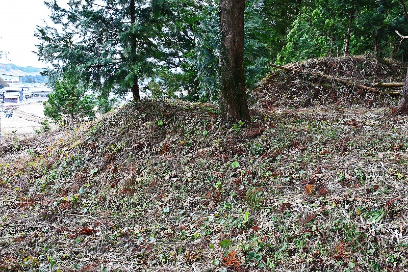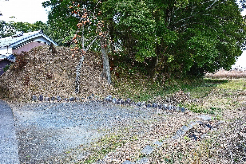 旧家そのものの宅地部分が城館跡であるが、思いのほか良好な状態で単郭方形の重厚な堀跡と土塁が残存していた。