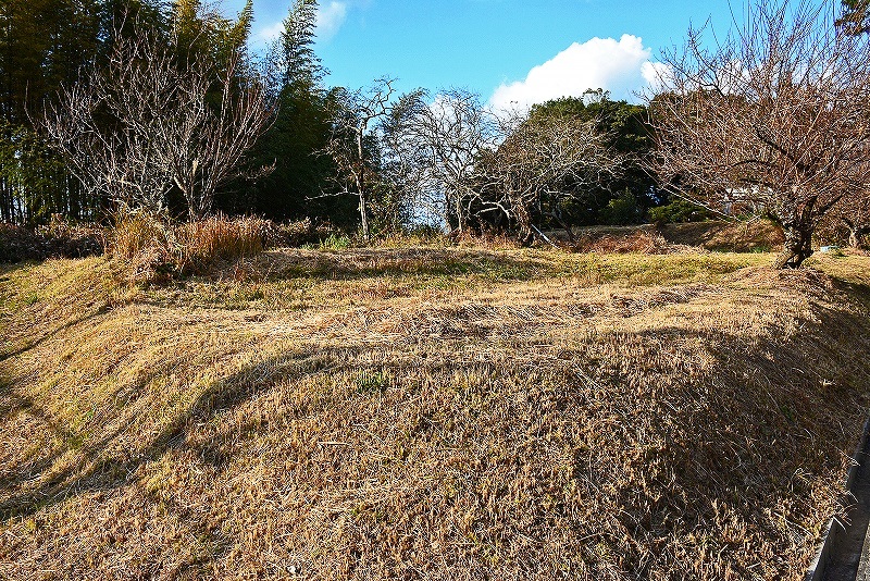 城域り東側は市道の拡張工事などにより大きく削られてはいるが、主郭部のコの字型の土塁は樹木伐採がなされていることもあり非常に見ごたえがある。