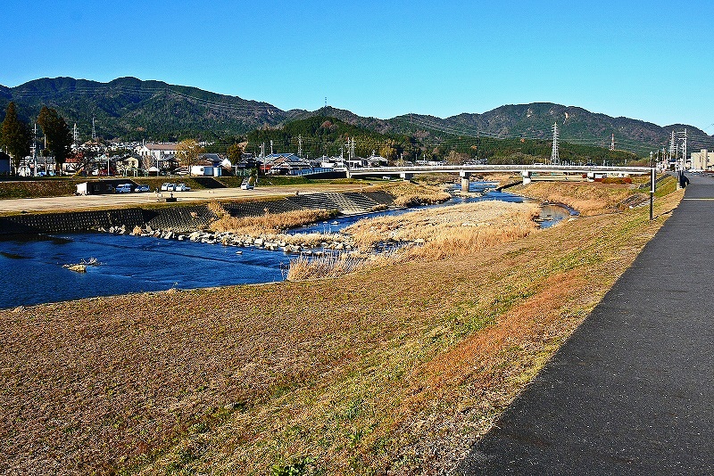 左手の河川は杣川で画像奥に向かって流れているのだが、強い西風が吹き荒れているため川面が波立ち画像奥から画像手前へと流れているような錯覚に陥った。