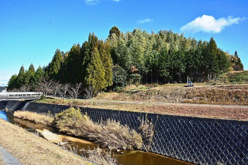 新宮神社が所在する丘陵の谷ひとつ挟んだ西側の丘陵先端部に所在している。