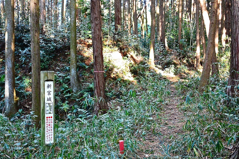 新宮城の南西約50mに谷を挟み所在しているが、現状では住宅側の下を通る道からのアプローチは倒木と藪のため多少の困難を伴う。