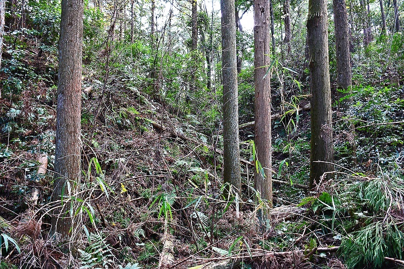 全体として竹木が繁茂しているという印象があるが、西側部分の遺構についてはある程度見通しも確保されているので観察は可能であった。