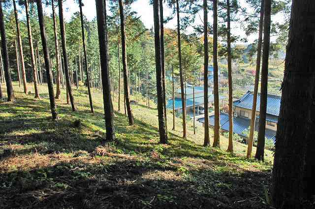 しかしこの三方の溝状の地形は完全に繋がっており、南北50m、東西100mほどの平坦な杉林を取巻くように配置されている由。