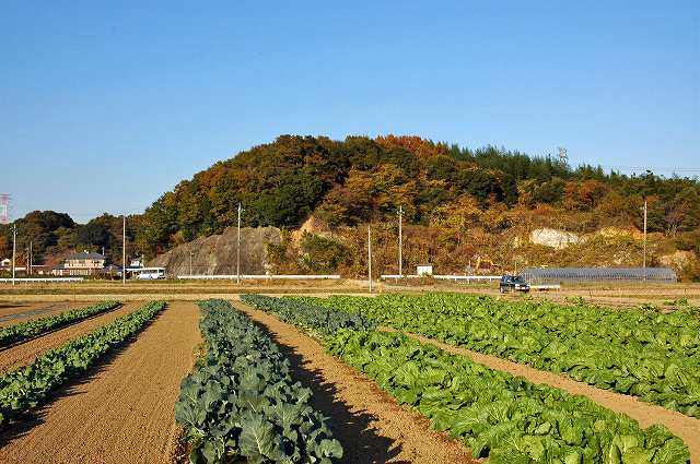 南側は傾斜もきつく比高差は20m近くあるものの、東側は現状では県道47号線に接していて比高差10m未満の緩斜面。