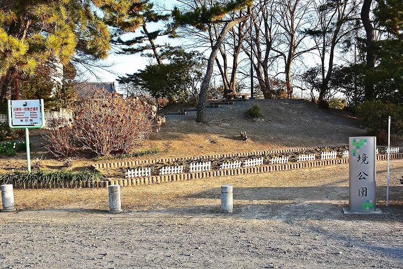 弁天池の北に隣接した「境公園」の築山 数十年物の樹木が生えてはいましたが、古墳や近世の塚でもなく、より新しい近年のもののようでした。