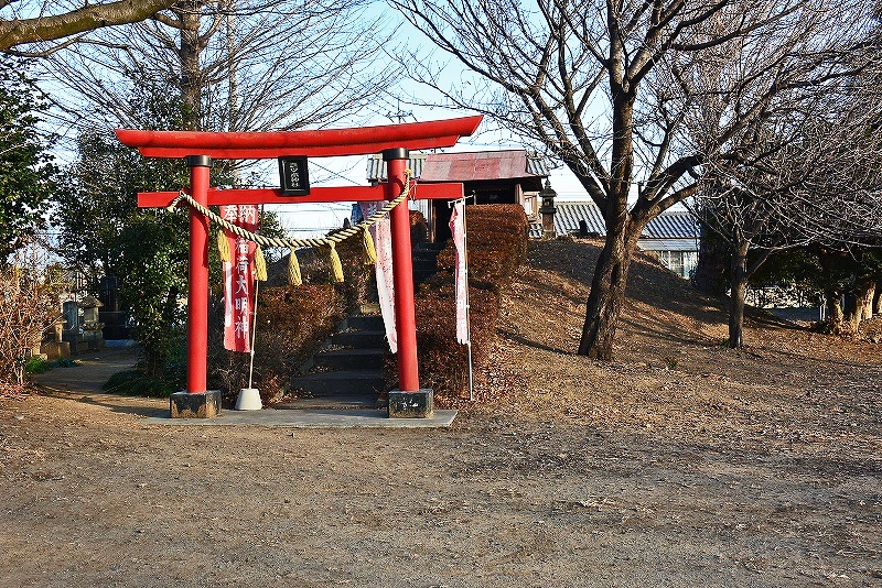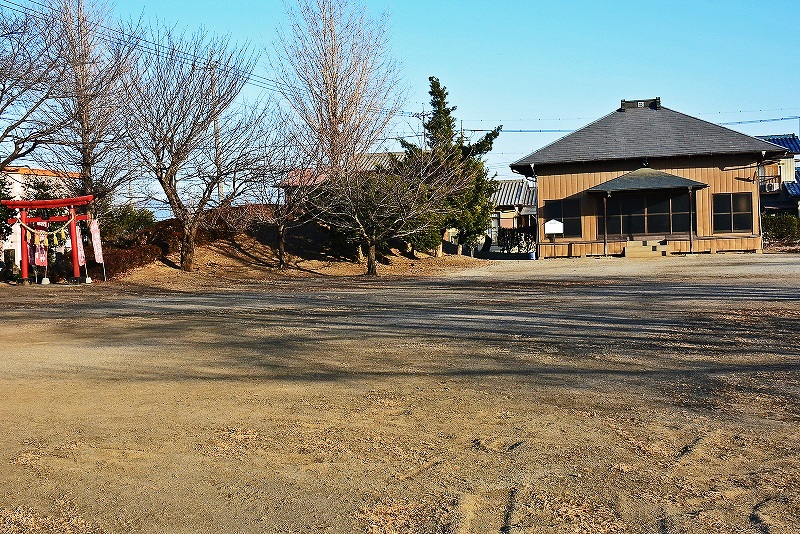 稲荷社の祀られた三ツ木神社 土塁のようにも、古墳のようにも、神社普請の際の盛土のようにも見える。比高約3m前後、長さ約15m、基底部幅約5mほどの規模であった。