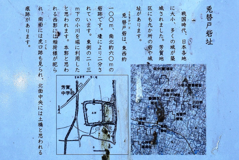下記画像のような城跡の説明版が設置されていなければ、おそらくは所在地さえ把握できずにそのままスルーしてしまいそうな光景でもあった。
