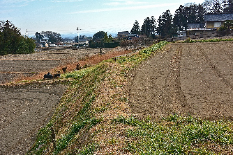 城跡へはこの八幡神社の参道から入り境内地を東側に抜け東側の崖線に沿った農道のような細道を北へと向かいそのまま県道34号線まで歩いた。