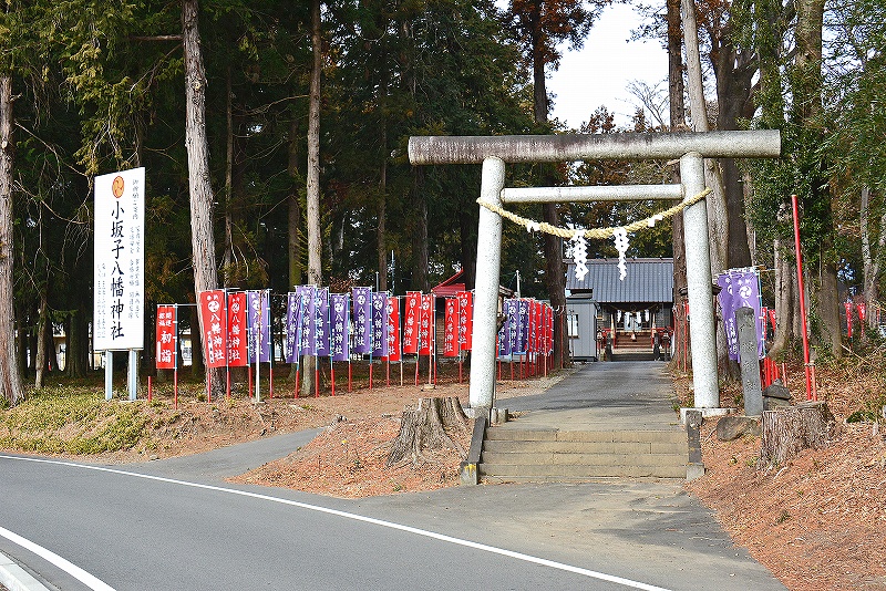 台地先端に鎮座する小坂子八幡神社にてこの日何回目かの初詣祈願。