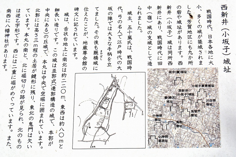 兎貝戸の砦から芳賀中学校の東側の道を北上して小坂子城へと向かった。