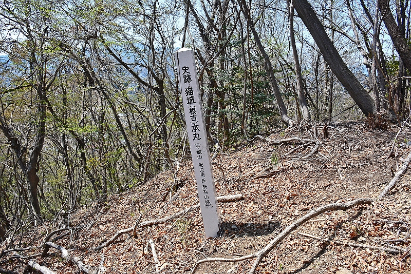 城跡標柱の所在が分かりにくいという情報もあったが、画像のように西峰の主郭南斜面に所在していた。